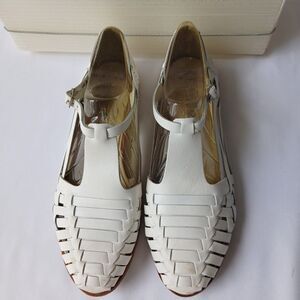 The Esprit De Corp white leather sandals are a stylish and versatile addition to any woman's shoe collection. With a retro 80s vibe and a comfortable flat heel, these sandals are perfect for a variety of occasions from casual outings to formal events. Made in Brazil by the renowned brand Esprit, these woven leather sandals feature an adjustable buckle closure and a cushioned insole for all-day comfort. The breathable design and lightweight construction make them ideal for year-round wear, while the hipster and designer themes add a touch of sophistication to any outfit.