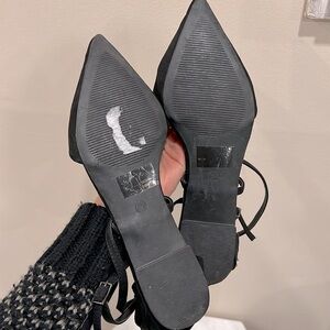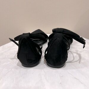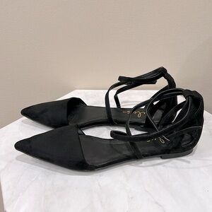Step out in style with these elegant black pointed toe flats. Featuring a chic ankle strap, these shoes offer both comfort and sophistication. Perfect for any occasion.
