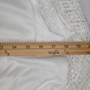 The Alfred Dunner Petite Size 8P Roman Holiday Crochet Cardigan & Tank Set is a stylish and versatile outfit perfect for travel, casual outings, or business meetings. The set features a floral pattern in white with long sleeves and a collared neckline. The crochet accents add a touch of handmade charm, while the pullover closure makes it easy to wear. Made from a blend of polyester and spandex, this tunic-style ensemble is machine washable and designed for a classic fit ideal for petite women. Perfect for those who love designer pieces with a colorful and grannycore aesthetic.