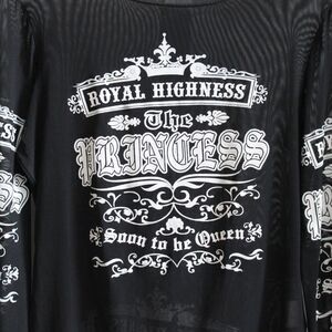 Graphic mesh top with "Royal Highness The Princess Soon To Be Queen" lettering.