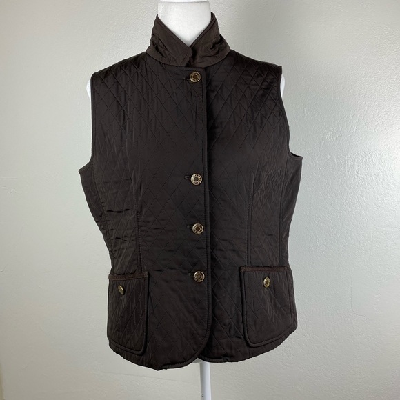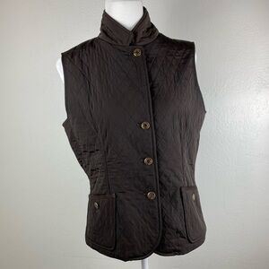 Talbots Petites Quilted Brown Cozy Vest Coat Women’s size Medium Petite with pockets