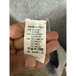 GReat used condition. . Jaki London Women's Gray Asymmetric Draped Cowl Neck Sweater Size L/XL. Made In Italy. Ultra Soft Viscose Blend. Knit features open weave stitching at stretch points for flexibility. Length longest part is 36in, shortest is 26in. Small run see last photo.