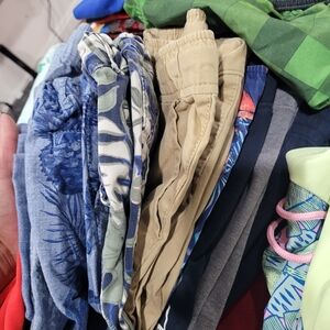 A vibrant mix of clothing in various colors including yellow, blue, and multicolor patterns. Perfect for adding variety to your wardrobe.