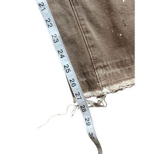 Condition: Pre-owned with intentional paint marks, distressing, and raw hems—part of the design.