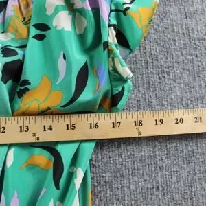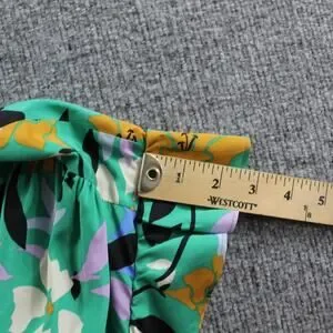 Color/Pattern: Green base with multicolor floral print (yellow, white, black, lavender)
