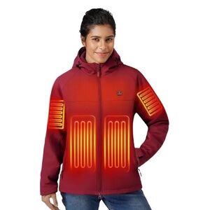 Stay warm with the ULUSERN heated jacket. Sleek black design with orange accents.