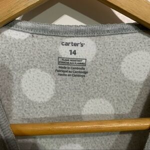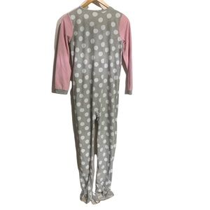Carters Girls Youth One Piece Pajama footie Fleece Heart pink gray Size 14. See pics. Some soiling on the feet but no holes or rips. Otherwise great condition! Ships fast!