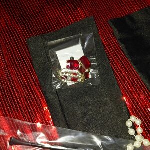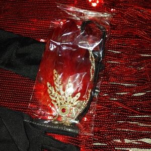 Dress gloves, boa earrings, headpiece and necklace size medium brand new