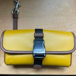 Elevate your style with the Coach Red Leather Crossbody Bag. This chic accessory features a vibrant red hue and elegant gold hardware, perfect for any occasion.