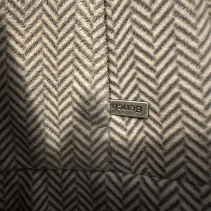 Stylish gray herringbone jacket with a zip-up front. Perfect for layering.