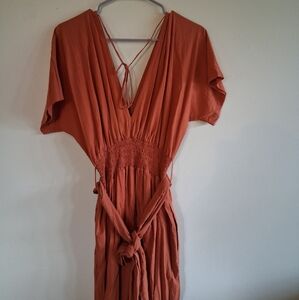 About this piece: Beautiful v neck in the front and back. stretchy waistband to make you look snatched girl. Lil clip in front v for modesty option. nice and long, perfect for a tall gal