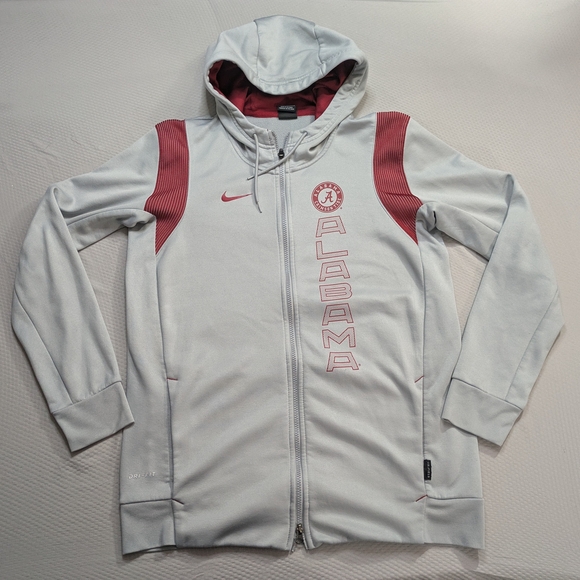 * *Refunds or exchanges will not be provided for sizing issues related to shrinkage or discrepancies between the original tag size and the actual measurementsStylish Nike hoodie with Alabama logo. Features gray body and red accents. Comfortable and warm.