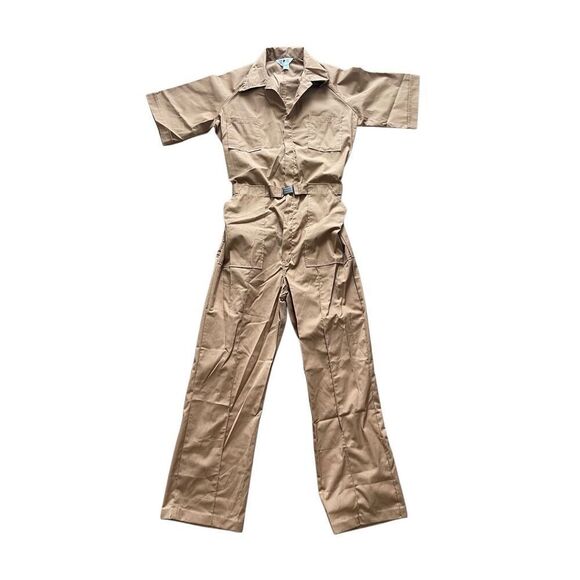 NWOT Vintage Tom cat tan short sleeve coveralls zip up metal belt