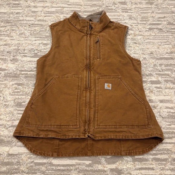 Vintage Carhartt Vest Sherpa Lined Duck Canvas Women’s S (4/6) Brown Full Zip VW001211
