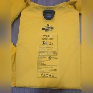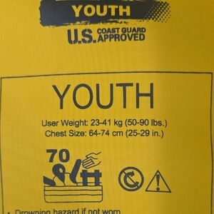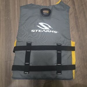 Stearns youth life jacket in vibrant yellow. Features a secure black handle.