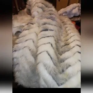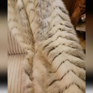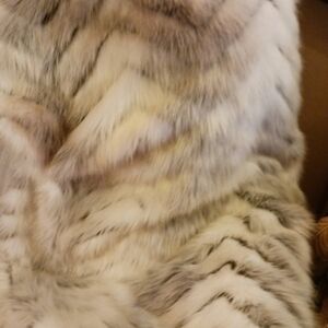 Soft faux fur blanket with a stylish gray and cream design. Ideal for cozying up in style. tan brownish beautiful