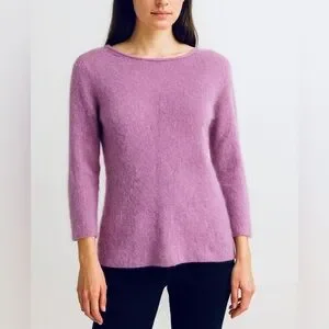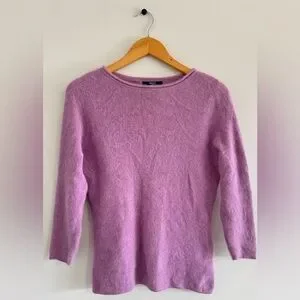 Hunt Club Women’s M Purple Angora Sweater 70% Angora Rabbit Hair Soft Fuzzy VTG Hong Kong