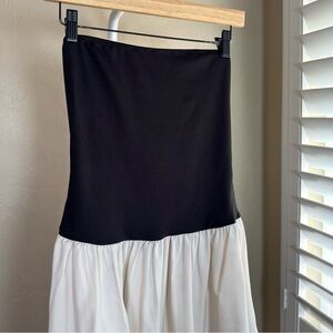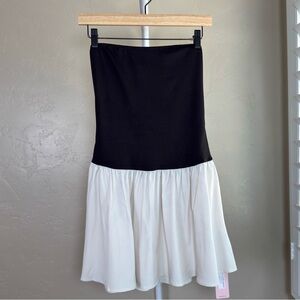 Micas Strapless Mini Dress Black Cream Two Tone Tube Top Skater Party Outfit NWT