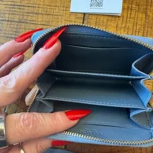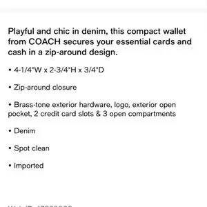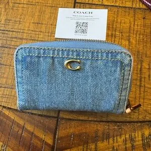 Coach Denim Coin Purse wallet nwot attached indigo gold brass hardware. Tags are not attached but this has not been used just stored in a box. Light wash indigo