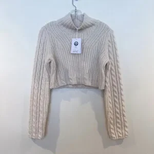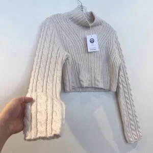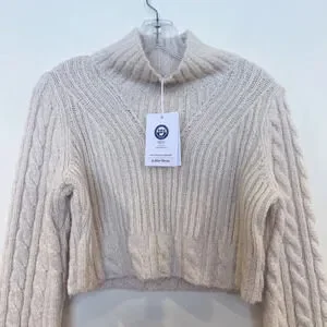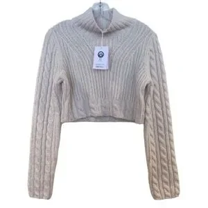& Other Stories Wool Blend Classic Cable Knit Mock Neck Cropped Sweater S NWT