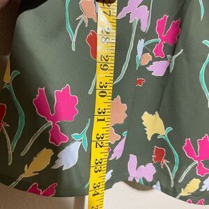 Chic green mini dress with vibrant floral patterns. Features stylish puff sleeves. Ideal for a fresh, lively look.