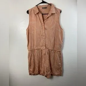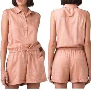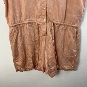 Prana Tencel Weekend Escape Orange Floral Boho Summer Vacation Cruise Outdoor Romper Pockets Size Large