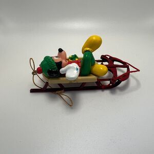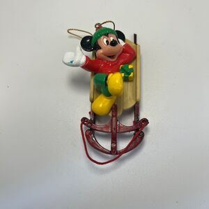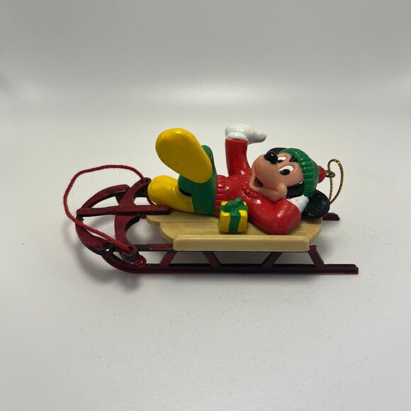 Vintage, Disney, Collectible, Holiday Decor, Christmas, Kitsch, Nostalgia, Pop Culture, Vintage Disney ornaments, Mickey Mouse sledding, festive holiday decor, Disney Christmas ornament, collectible Mickey Mouse, nostalgic ornaments