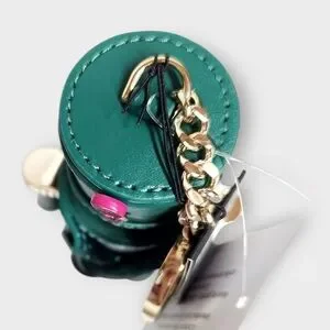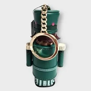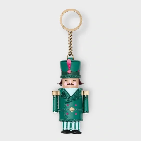 Playful green soldier keychain with pink and gold details. Adds charm to your accessories.