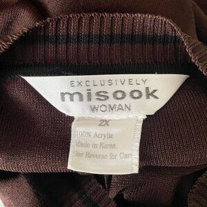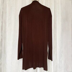 Misook Women's Cardigan Plus Brown Open Front Long Lightweight Slit Layering Casual