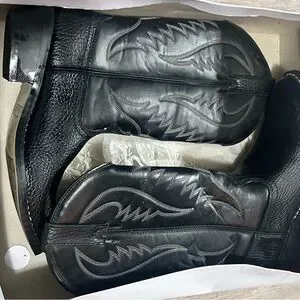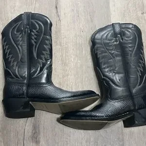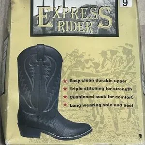 Step into style with Express's black western boots. Featuring an easy clean durable upper and triple stitching for strength, these boots are designed for comfort with a cushioned sock. Perfect for long-lasting wear.