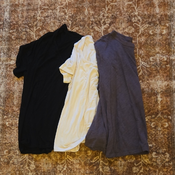 Set of two Old Navy short sleeve tees and one amazon tee (cream). Includes black, white, and purple colors. Soft and comfortable fabric.