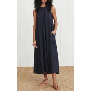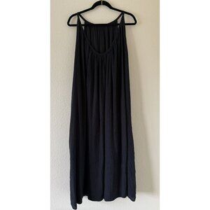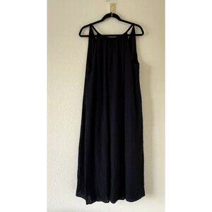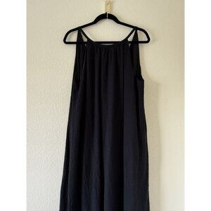 Excellent used condition. Jenni Kayne Drift High Neck Flowy Halter Maxi Dress In black seersucker Size Large. Fabric composition: 60% cotton, 40% rayon, with a lining made of 100% rayon. Features halter / high neck style, flowy silhouette, maxi length, light and breathable fabric, low back, thin shoulder straps. Length 51in, pit to pit 26in.