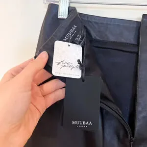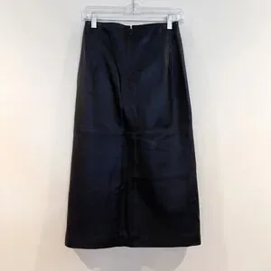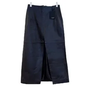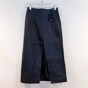 Muubaa Zoe Black Leather A Line Split Front Classic Designer Midi Skirt US 2 NWT