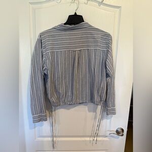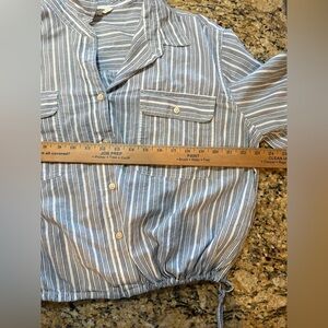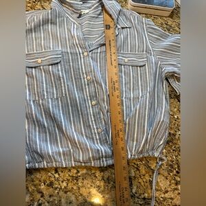 Lucky Brand blue white striped button-up cotton shirt drawstring waist large