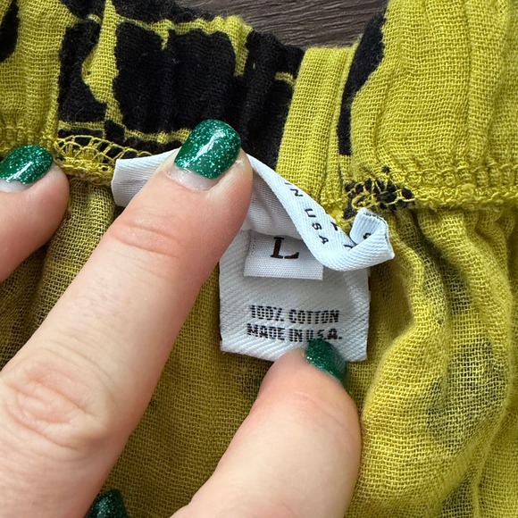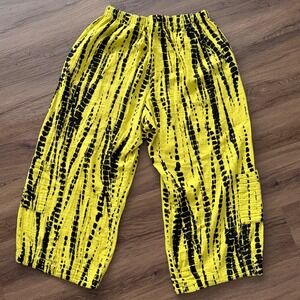 Keywords: Bryn Walker, gaucho pants, cropped pants, tie dye, yellow pants, black print, boho, bohemian, casual, lightweight, cotton, made in usa, plus size, summer, vacation