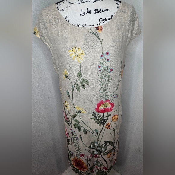 This Lungo L'arno Floral Linen Dress in Women's XL is a stylish and comfortable option for those looking for a long, sleeveless dress featuring a floral pattern. Made from lightweight linen material, this pullover dress includes pockets for added convenience. The multicolor design and brand name Lungo L'arno add a touch of elegance to this sundress, making it a perfect choice for any outdoor occasion.
