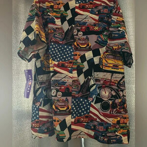 Vintage VTG Deadstock New with tags NWT scrub top featuring stock car racing print nascar race cars pediatrics pediatrician unisex size 2XL big and tall