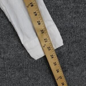 Previously worn with typical linen wrinkling from wear and storage. Fabric and buttons are clean and intact with no stains, holes, or damage.