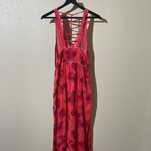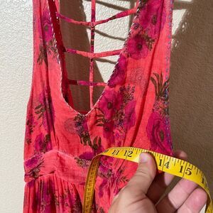 Chic backless design with floral patterns. Vibrant pink hue. Ideal for summer outings.