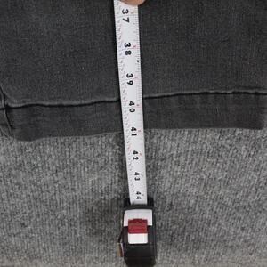 Style: Womens straight leg jeans in a charcoal gray wash with tattoo-inspired graphics.