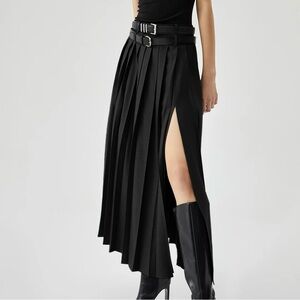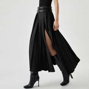 Commense Black Pleated High Slit Maxi Skirt Medium NWT