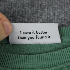Details: Ribbed crew neckline, cuffs, and hem; psychedelic nature-themed sleeve graphics featuring smiling mushrooms and flowers; small Parks Project logo tag at side seam; inner neck tag with slogan "Leave it better than you found it."