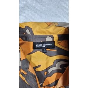 Jones New York Top Womens Size 4 Orange Swirl 100% Silk Button Up Long Sleeve