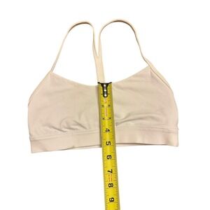 Great used condition, no flaws other than small marking on trim, no cups included. Material feels buttery soft and weightless with light support. See pics for measurements and mark on fabric.
