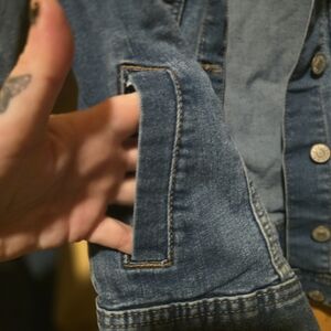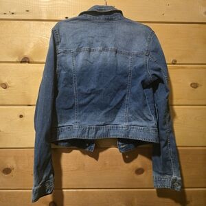 Celebrity pink medium distressed wash denim jacket stretchy and soft