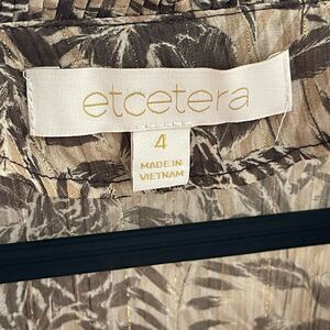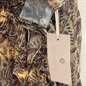 Chic blouse with ruffled neckline. Leaf pattern design. Versatile and elegant.