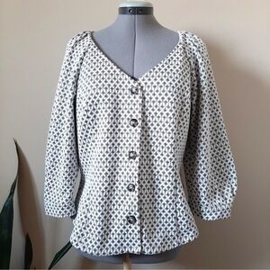 Ett Twa Women’s Button Front Coralie Top Gold Accents Size Medium . Smoke free home. Ships fast!