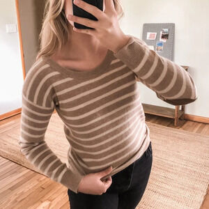 Joie Striped Wool Cashmere Blend Tight Knit Scoop Neck Classic Pullover Sweater Small