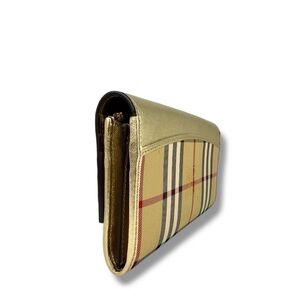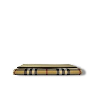 The Burberry Nova Check Long Wallet features the iconic beige plaid canvas paired with a luxe metallic gold leather flap for a chic, timeless contrast. Crafted from durable coated canvas with smooth leather trim, this wallet embodies Burberry’s classic British heritage with a modern twist. The long silhouette opens to a well-organized interior designed to hold cards, cash, and essentials with ease. Its slim profile makes it perfect for slipping into handbags while still standing out as a statement accessory. A beautiful blend of signature style and everyday function.