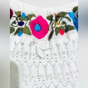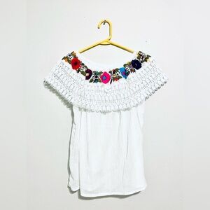 White Cotton Mexican embroidered off shoulder top women's S/M